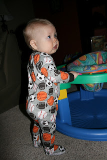 A has enjoyed his new trick of standing up....even to the point of not being able to sleep because he wanted to perfect it. However, as the last picture shows.....it may have caught up with him.